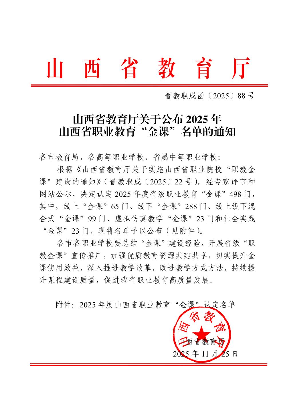 本次省级职教“金课”评选,是依据《山西省教育厅关于实施山西省职业院校“职教金课”建设的通知》要求,经专家严格评审、网站公示等环节最终确定,全省共认定498门优质课程,涵盖线上、线下、混合式、虚拟仿真教学、社会实践等5种类型,其中线上“金课”仅65门,竞争尤为激烈。