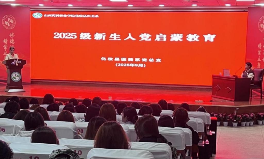 为引导新生坚定理想信念,明确成长方向,积极向党组织靠拢,化妆品医美系党总支于2025年9月26日在学院报告厅开展2025级新生入党启蒙教育,全体大一新生参加,教育活动由王丽丽老师主持。