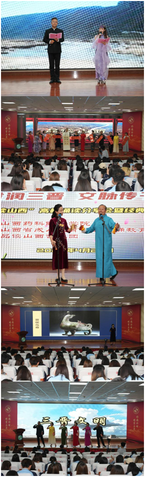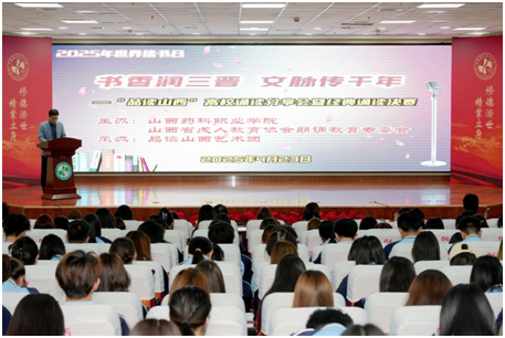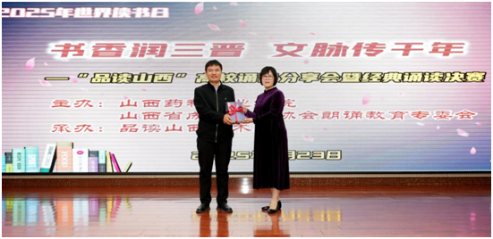 “书香润三晋 文脉传千年”高校诵读分享会由山西省成人教育协会朗诵教育专委会、山西药科职业学院主办,品读山西艺术团承办。山西省成人教育协会副会长祁晓华,山西省成人教育协会副会长、山西中医药大学人文社会科学学院党总支书记张志强,山西成人教育学会朗诵教育专业委员会主任刘慧琴,学院领导庄东军、刘志伟等出席活动。刘志伟致开幕辞,庄东军代表学院接受刘慧琴为学院赠送的《品读山西》图书。