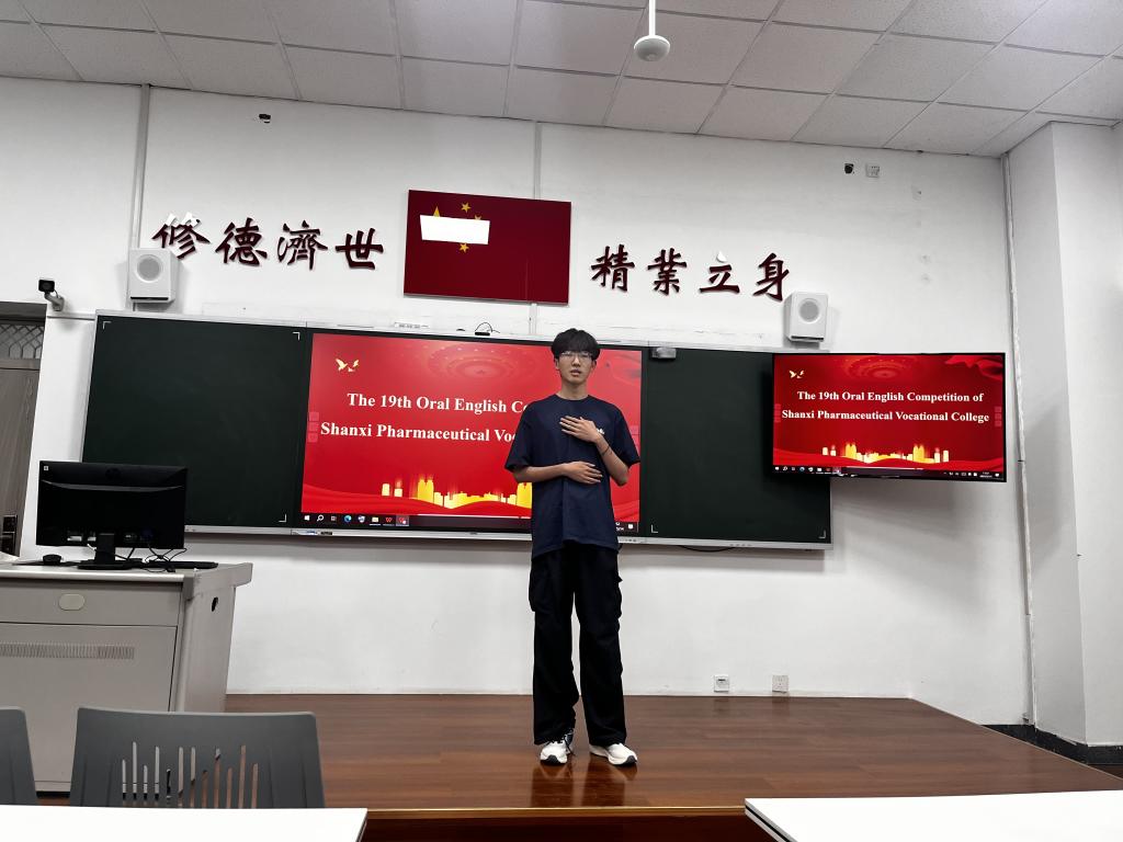 最终,2024 级药学高本 1 班的相凌旭同学凭借稳定的发挥、卓越的语言能力和自信的舞台表现,在众多选手中脱颖而出,斩获本次大赛第一名。