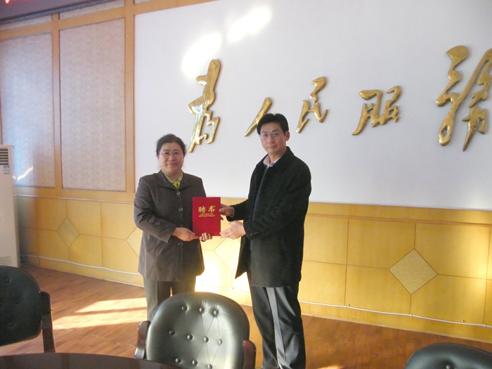 张虹处长宣读了学院《关于聘任任晋斌等37名专家担任学院客座教授的通知》(晋药院教字〔2013〕号)文件。张震云副院长为部分客座教授颁发了聘书。