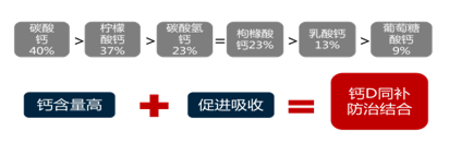 碳酸钙作为当前主流的补钙原料,其元素钙含量高达40% 。维生素D对钙的吸收是不可或缺的,可以作用于小肠粘膜细胞,促进钙结合蛋白的合成。维生素D3是维生素D中生物代谢率最高的一种活性形式。碳酸钙维生素D3,近几年呈较高增长,成为补钙品类中最亮眼的明星品类。