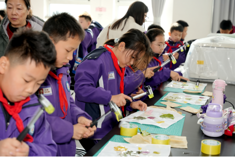 活动期间,学生们分组参与多项精彩纷呈的职业体验项目。在植物拓印区,他们用灵巧的双手将自然之美永久定格于纸张之上;漆扇制作工坊里,孩子们尽情释放创意,绘制出一把把独具特色的漆扇;艾条制作环节,他们认真学习艾条的制作工艺,感受着古老技艺的独特魅力;香牌制作区,他们精心调配香料,沉浸在中医药文化的独特韵味之中。中药调剂、茶艺体验、微生物观察以及药茶品尝等活动,让学生们全方位、多角度地领略了中医药文化的博大精深。