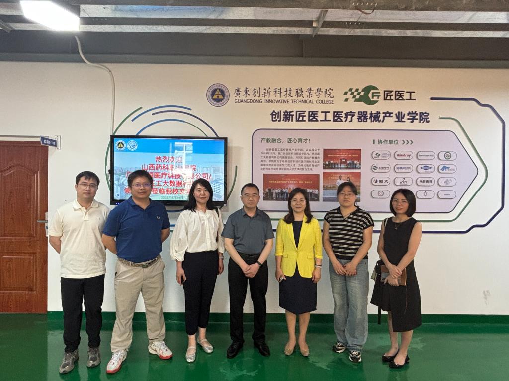 在广东创新科技职业学院医药健康学院,兰小群院长带我们参观了医疗器械实验实训室。座谈会上,双方介绍了学校和专业基本情况。双方主要就课程建设,教学及管理等方面进行了深入交流。