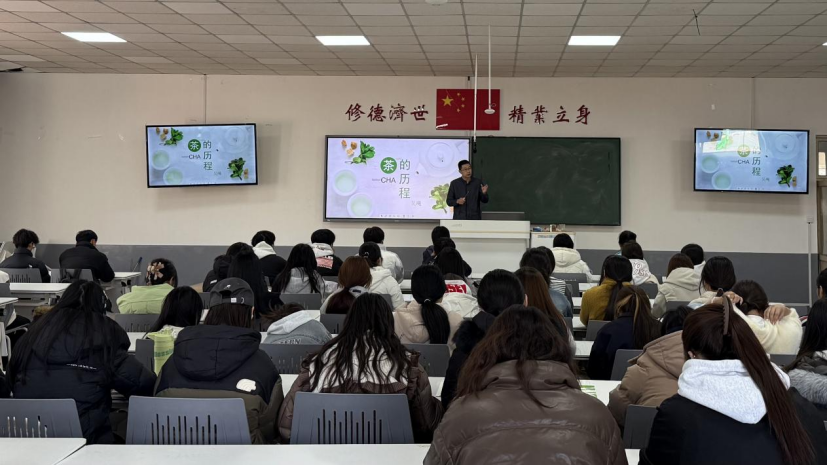 2025年11月11日,食品系特别邀请山西文化旅游职业大学“三晋技术能手”、“晋商待客茶礼”非遗传承人吴飚老师,重磅开启主题为“茶的历程”的茶文化专题讲座。这场活动,为我系师生奉上了一场兼具知识性与感染力的文化盛宴,旨在引导学子从典籍与历史中探寻茶艺精髓,深切感受中国茶文化的深厚底蕴与当代价值。