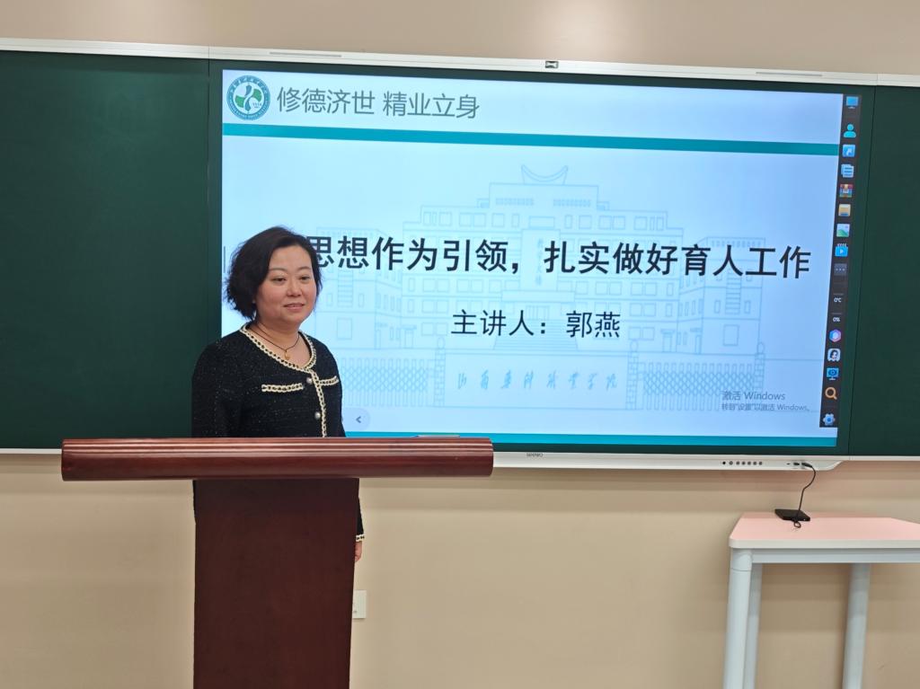2025年4月16日下午,思政部教师郭燕围绕“以思想作为引领,扎实做好育人工作”为主题为学院“一站式”辅导员开展了专题培训。她从高校学生思想政治工作现状、辅导员工作定位与职责、辅导员工作重点与工作方法、新任辅导员工作要点四个维度,阐释了新时代高校辅导员的职责内涵与实践路径,为做好育人工作提供了切实可行的行动指南。为进一步提升高校学生思想政治工作质量,为高校辅导员队伍的专业化发展提供了有力支持。