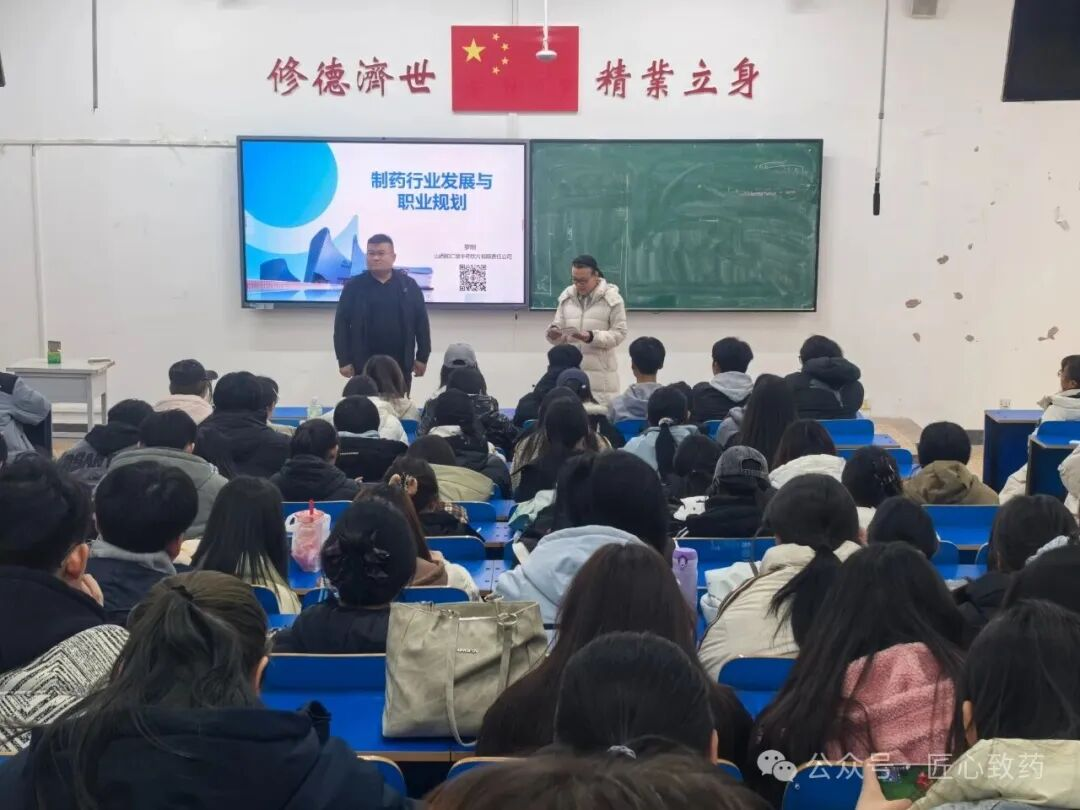 11月 19 日,制药系分团委在东教学楼一层一阶举办“杰出老校友回母校”专题讲座,山西和仁堂中药饮片有限公司副总经理、杰出校友罗刚受邀分享,系副主任李晓红主持,200 余名师生参会;罗刚以“制药行业发展与职业规划”为题,结合自身从业经历,剖析了全国及山西制药行业发展规模、前景与数智化、绿色化核心趋势,指出企业对高素质复合型人才的需求,并从深耕专业、跨界提升能力、关注前沿动态三方面给出成长建议;此次讲座兼具职业规划与专业思想教育意义,激励同学们以优秀校友为榜样,夯实基础、规划生涯,为守护人民健康贡献力量。