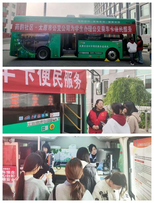 10月30日,为满足学生出行需求、享受公交乘车卡优惠政策,在药韵社区明德公寓4号楼前,药韵社区联合太原市公交公司开展“为学生办理公交乘车卡便民服务活动”。