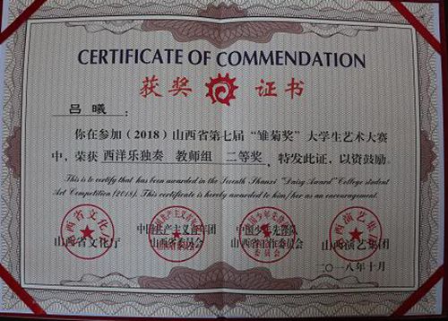 近日,山西省第七届“雏菊奖”大学生艺术大赛成绩揭晓。我院药学系吕曦老师演奏的作品《沃拉昆斯》荣获西洋乐独奏教师组二等奖,刘嘉梁等10名学生表演的群舞《沧海一声笑》荣获舞蹈类集体三等奖,为我院争得了荣誉。