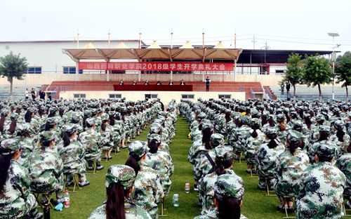 2018年9月13日上午,学院在操场举行2018级新生开学典礼。在校院领导张瑞芳、张震云、邹本贵、陕荣善、王仙芝、贾建斌出席开学典礼。2018级全体新生及各部门、单位主要负责人参加典礼。开学典礼由院党委委员、副院长陕荣善主持。
