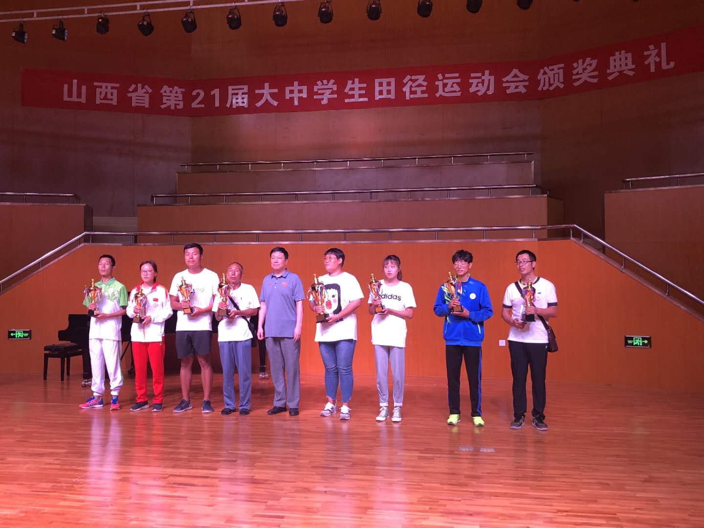7月18-22日山西省第二十一届大中学生田径运动会在太原师范学院隆重召开。我院18名运动员,参加了14个项目的竞赛,36人次获奖。获得两银六铜等8枚个人奖牌,并获专科组男子团体第五名,女子团体第五名,总团体第五名的好成绩。