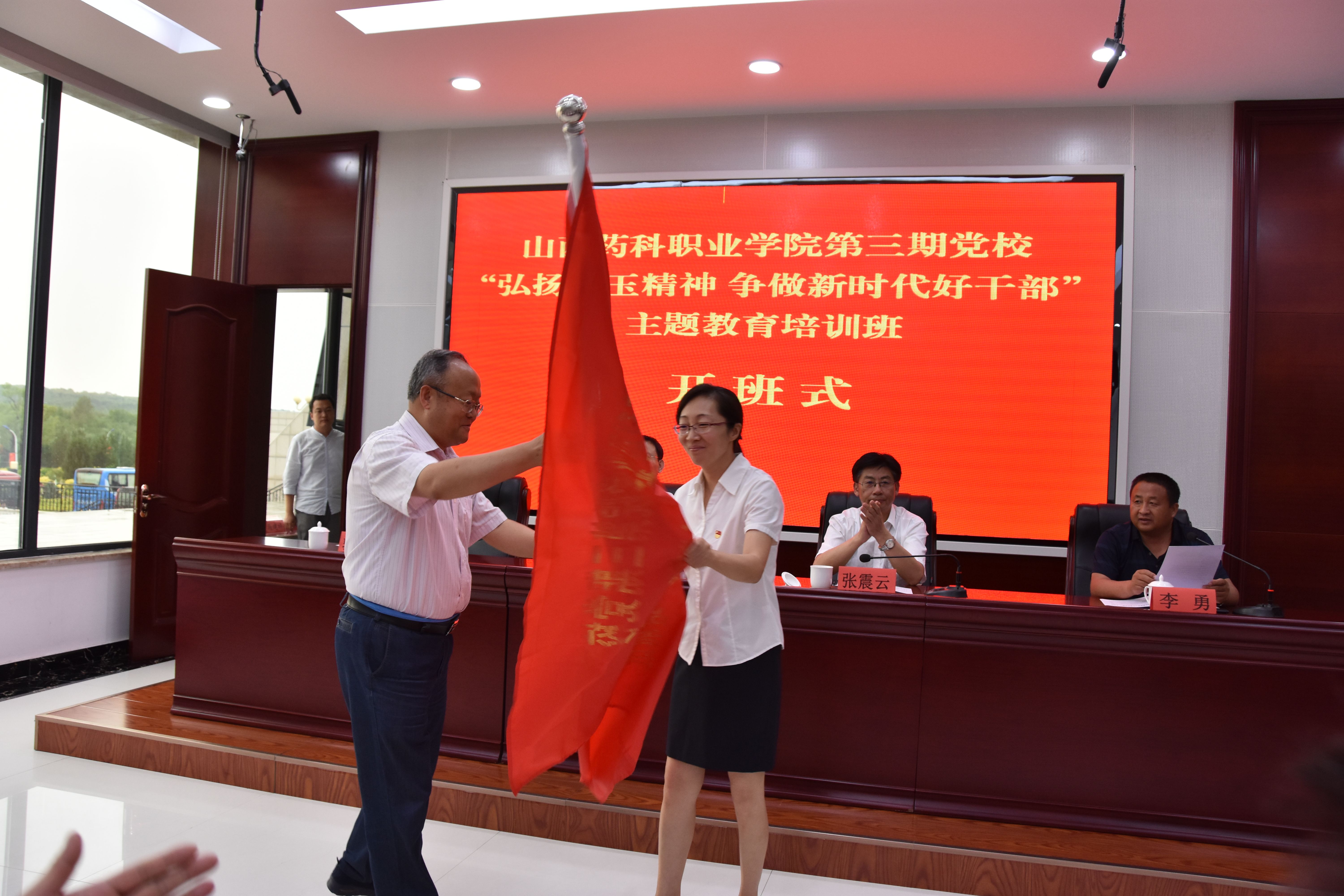 开班仪式上,右玉干部学院教务长郭彩同志为培训班授旗并致欢迎词。我院党委书记张瑞芳同志做开班动员,他对右玉干部学院为此次培训班作出的精心安排表示感谢,并对全体学员提出三点要求,一要充分认识本次主题教育培训的重要意义,二要深刻领会本次主题教育培训的特殊性,三要切实增强本次主题教育培训的实效性。张瑞芳同志强调,这次主题教育培训,不仅是学习贯彻习近平新时代中国特色社会主义思想和党的十九大精神、学习贯彻习近平总书记视察山西重要讲话精神特别是学习弘扬右玉精神的重要指示精神的重要举措,也是提升我院各级干部自身素质和工作能力的有效途径,更是促进学院建设发展的现实需要。张瑞芳同志要求所有参加培训的学员,要端正学习态度,严守学习纪律,遵守八项规定,以良好的精神状态、饱满的政治热情,全身心投入到学习培训中去,认真做好学习笔记,深刻思考问题,力争通过主题教育培训,使自己在思想、政治和工作能力上都有所提高,争做主动作为、勇于担当的好干部,争做勤奋敬业、创新有为的新时代的好干部。