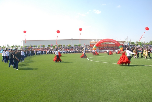 开幕式上举行了精彩壮观的大型团体表演。中药系表演的《太极拳》将其中止平稳、均匀柔和、舒展大方、绵绵不断的特点表现得淋漓尽致,散发着浓厚的中华传统文化深邃气息;生物制药工程系表演的《交谊舞》,步履轻盈,舞姿优美,格调高雅;药品经济贸易系表演的《 扇子舞 》,游摆自如,变化多端,异彩纷呈。最后,中药系以一曲活力四射、激昂向上的健美操《舞动的青春》再一次将全场气氛推向高潮。