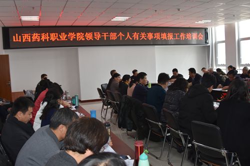 2019年1月7日下午,学院在综合楼523会议室组织召开了2019年领导干部个人有关事项填报工作培训会,院党委书记张瑞芳同志等领导和学院副科及以上干部约80人参加了培训会。会议由院党委副书记邹本贵主持。