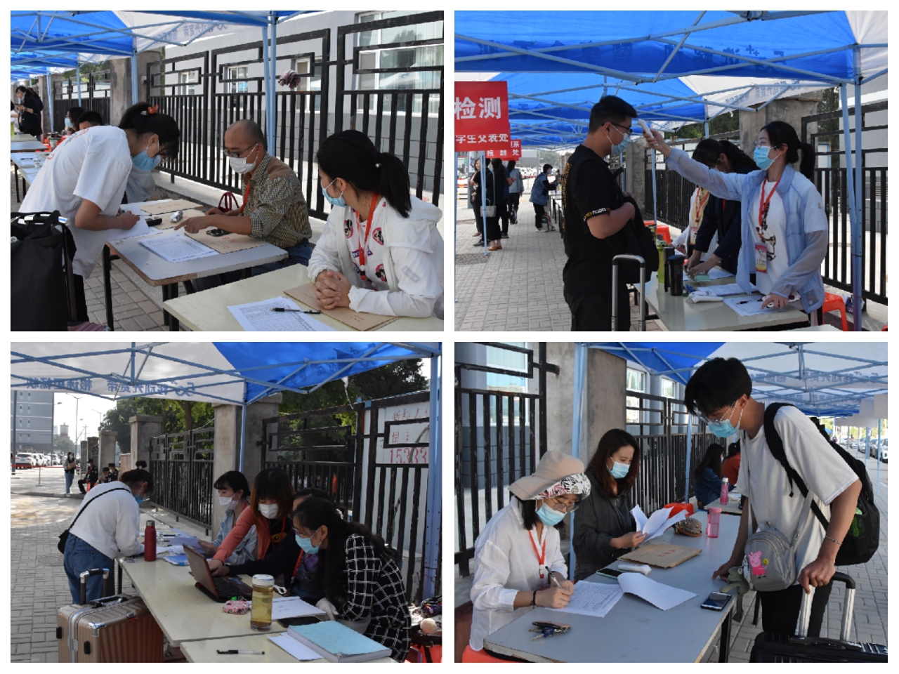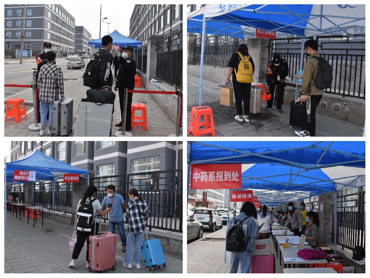 报到当日,各部门、单位认真组织,细致安排,学生依次通过体温预测、物品消毒、扫码核验、体温检测、信息登记等环节完成报到程序,安全有序进入校园。