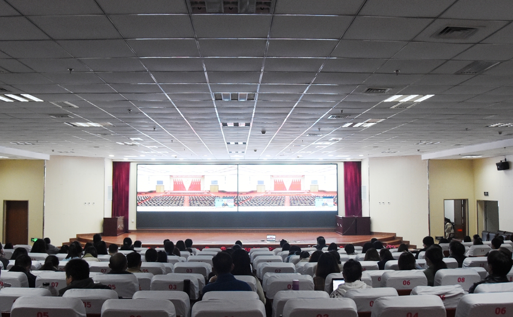 为深入学习宣传贯彻党的十九届五中全会精神,11月16日上午,我院在综合楼一层报告厅集中组织收看“省委宣讲团成员、省委教育工委书记、省教育厅党组书记、厅长吴俊清作的学习贯彻党的十九届五中全会精神宣讲报告会直播”。院领导班子成员,各党总支、直属党支部书记、各党支部书记,全体思政课教师、辅导员、学生代表收看了报告会直播。