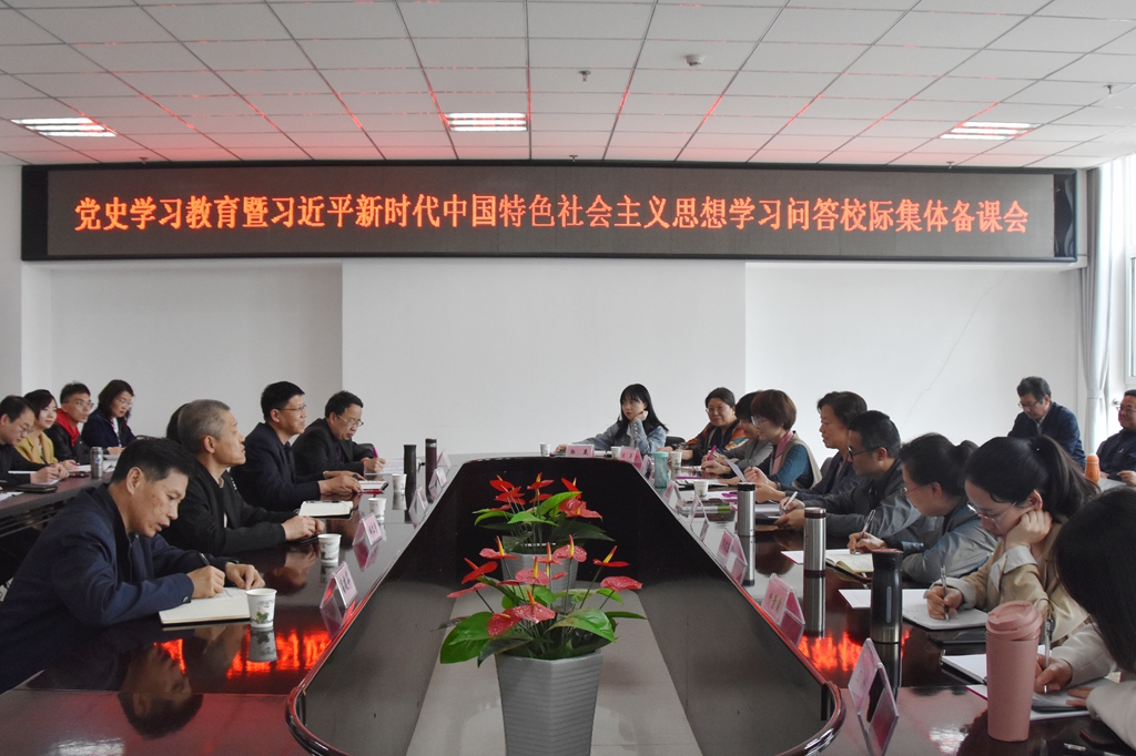 4月26日下午,山西省职业院校思政“双师型”名师工作室集体备课会在我院召开。本次备课会以“党史学习教育与《习近平新时代中国特色社会主义思想学习问答》”为主题,由山西省职业院校思政“双师型”名师工作室主办,山西经济管理干部学院(山西经贸职业学院)、山西药科职业学院、运城护理职业学院、山西财贸职业技术学院等4所学校的院领导、思政专家、思政课教师代表、学生代表共35人参会。山西经济管理干部学院(山西经贸职业学院)思政部主任张丹荣教授主持会议。