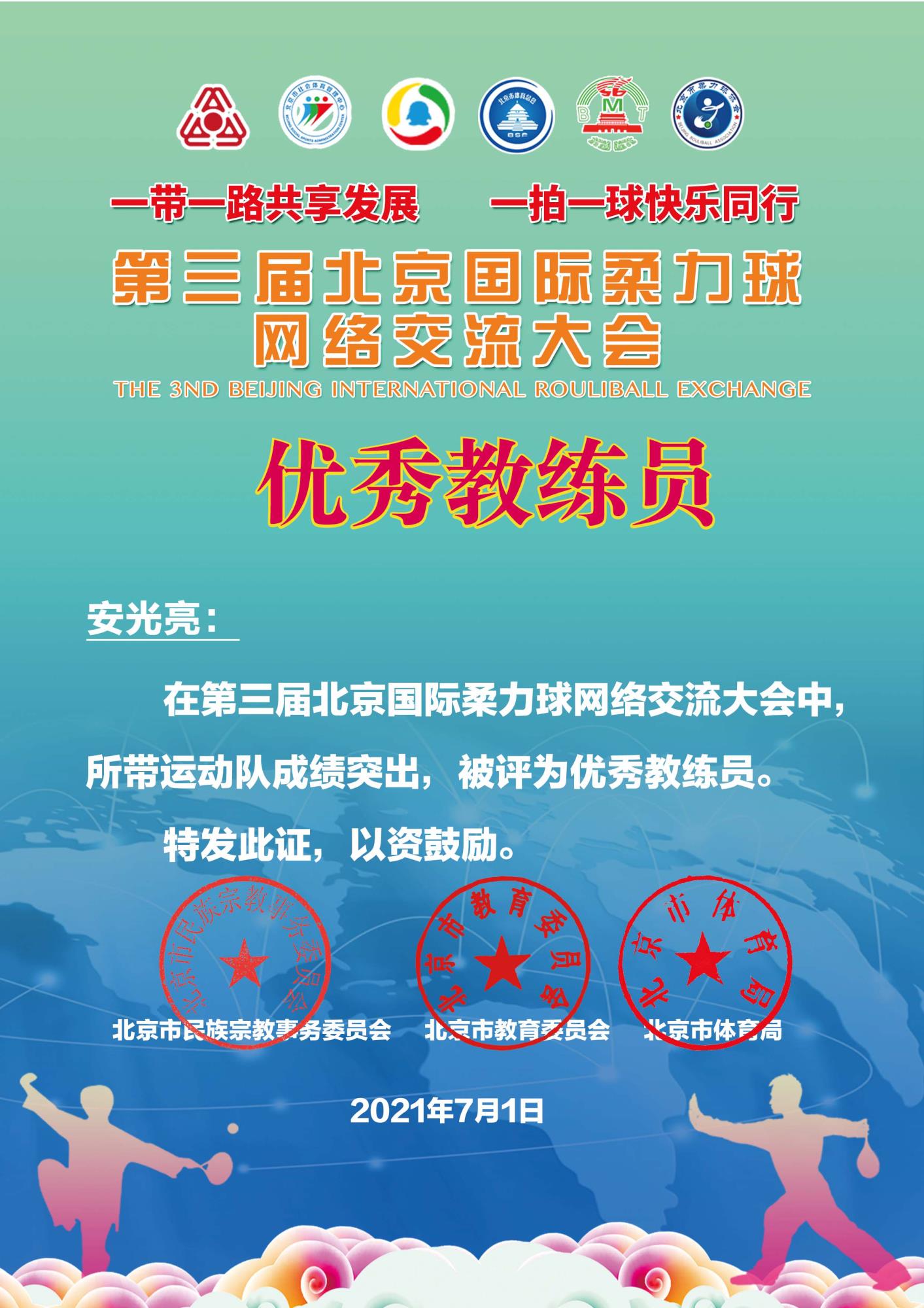 6月20日-30日,第三届北京国际柔力球网络交流大会于网上开赛,我院公共体育教学部安光亮老师领队,组织学生参加了此次比赛。