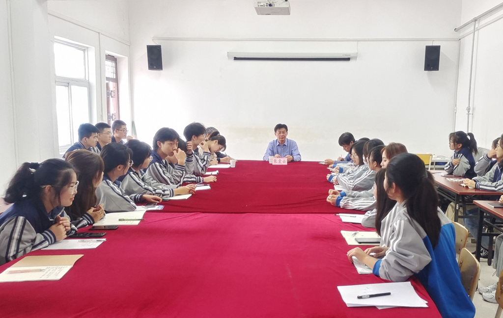 听取发言后,张院长从大学之道谈起,引经据典、深入浅出,勉励同学们要勤学上进,不负韶华,并对大家提出三点希望:一要养德守正,坚持以德养性、以文铸魂,涵养家国情怀,以高远站位、远大眼光、宽博胸怀,助力自身成长;二要健康向上,坚持锻炼强健体魄,滋养健全人格,以积极的心态面对大学生活,发挥示范表率作用;三要筑梦成材,认真做好职业发展规划,制定阶段成长目标,扎实理论知识,掌握娴熟技能,全面拓展素质,做最好的自己。