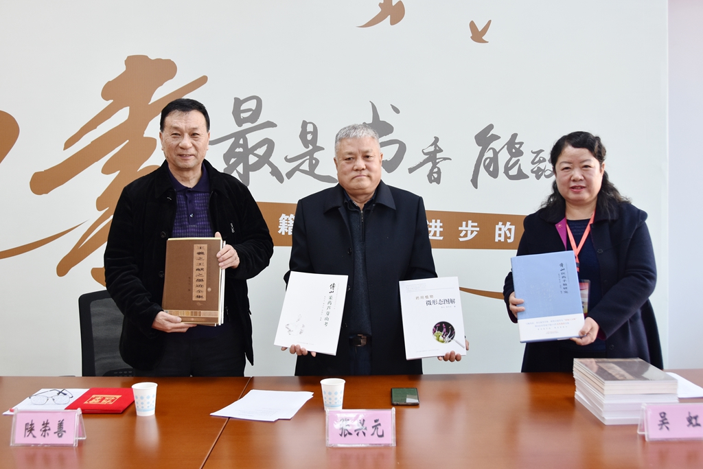 张兴元先生,1980年毕业于山西省中药材学校六班,曾经留校工作两年,现兼任山西中医药大学傅山文化研究中心研究员、傅山书画研究所所长,山西省第四次中药资源普查特聘专家等职,出版专著《王羲之王献之墨迹全集并解读》丛书(全四册)、《傅山医药手稿研究》等10余种书籍。本次捐赠图书为张兴元先生的主要力作:《王羲之王献之墨迹全集并解读》丛书(全四册)、《傅山医药手稿研究》《傅山采药芦芽山考》《药用植物微形态图解》。