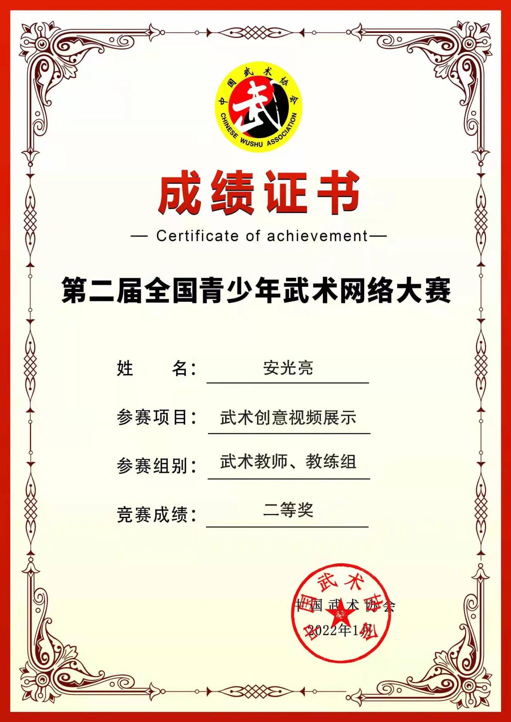 2021年12月20日-2022年1月15日,由国家体育总局中国武术协会组织的第二届青少年武术网络大赛于网上开赛,我院公共体育教学部组织教师参加了此次比赛。