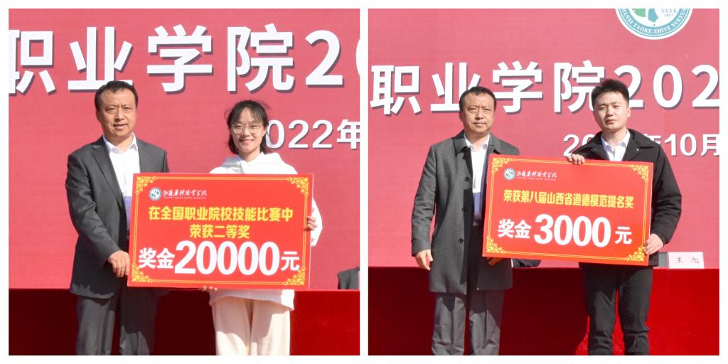 会上,学院领导为荣获全国职业院校技能大赛二等奖的刘成梅同学、荣获山西省道德模范提名奖的曹京瑞同学、荣获省大运会奖牌的优秀运动员刘恩梓等同学、荣获国家奖学金、国家励志奖学金的尉琳熙等同学以及被评为学院三好学生、优秀学生干部的张惠玲等同学颁发了奖状,并号召同学们要以他们为榜样,向他们学习,争取取得更大的成绩。