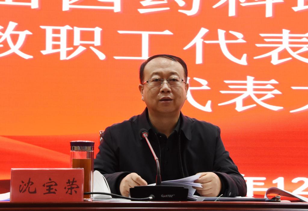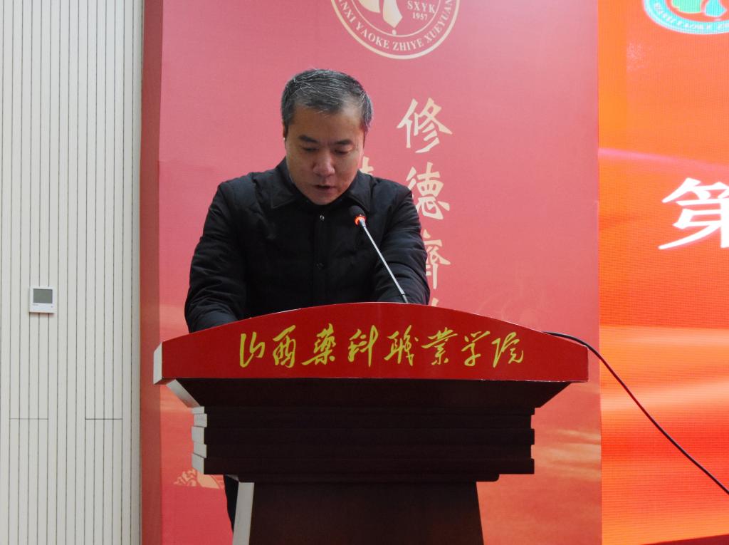 院党委书记王旭作了题为《做好药科主人翁,凝心聚力谋发展》的重要讲话。他代表学院党委向“双代会”的召开表示热烈祝贺,向新当选的各位委员表示热烈祝贺,向与会各位代表并通过他们向全院教师职工表示崇高敬意和诚挚问候。