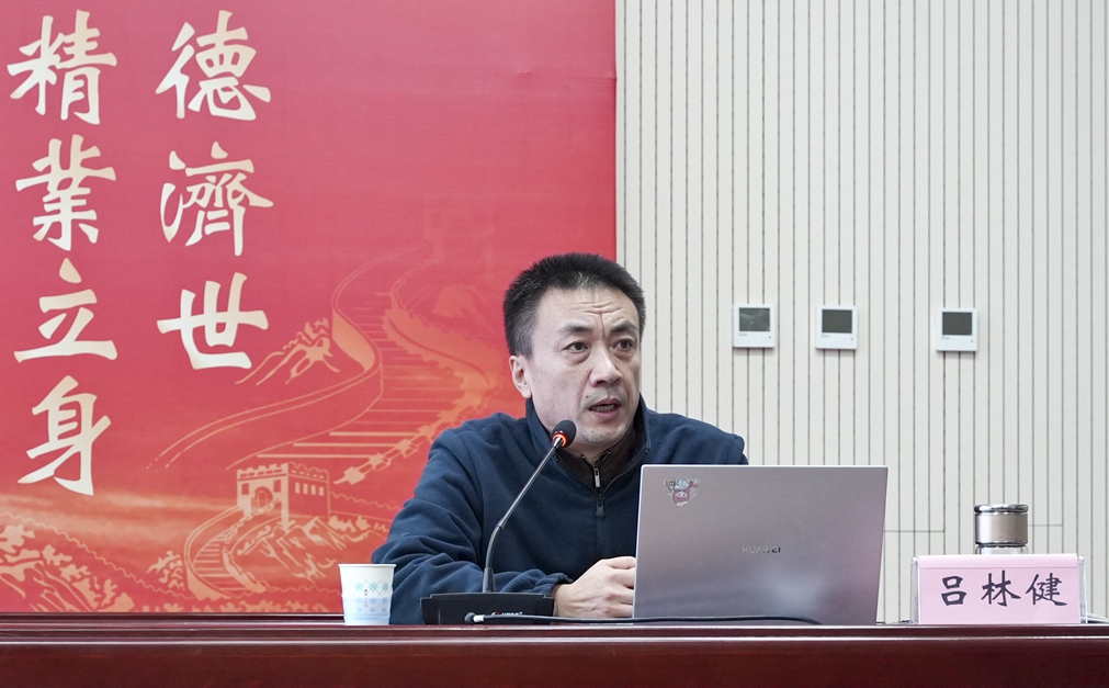 吕老师以“汉字说略”为题,从姓氏、说文解字、字理探赜讲起,图文并茂地展示了中华姓氏的演变历史、汉字背后的人文故事以及汉字的产生、隶变、拼音化等内容,并结合学院“修德济世、精业立身”校训,深入解读了校训背后的精髓内涵和精神追求。其讲座内容丰富、深入浅出、引人入胜,既有理论高度,又有文化厚度,更有实践深度,赢得了在场师生的强烈共鸣和热烈掌声。