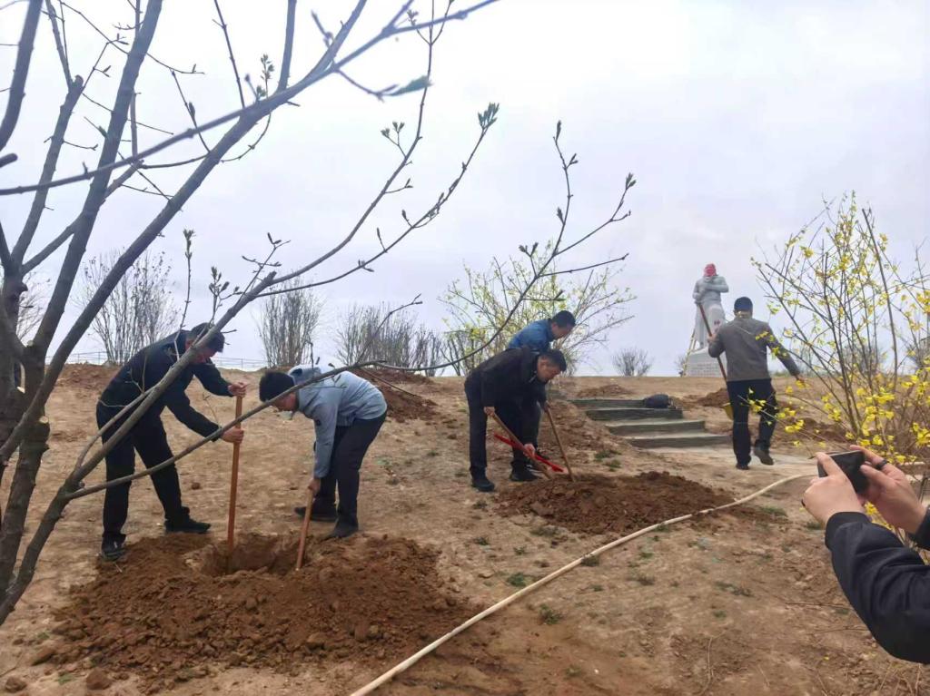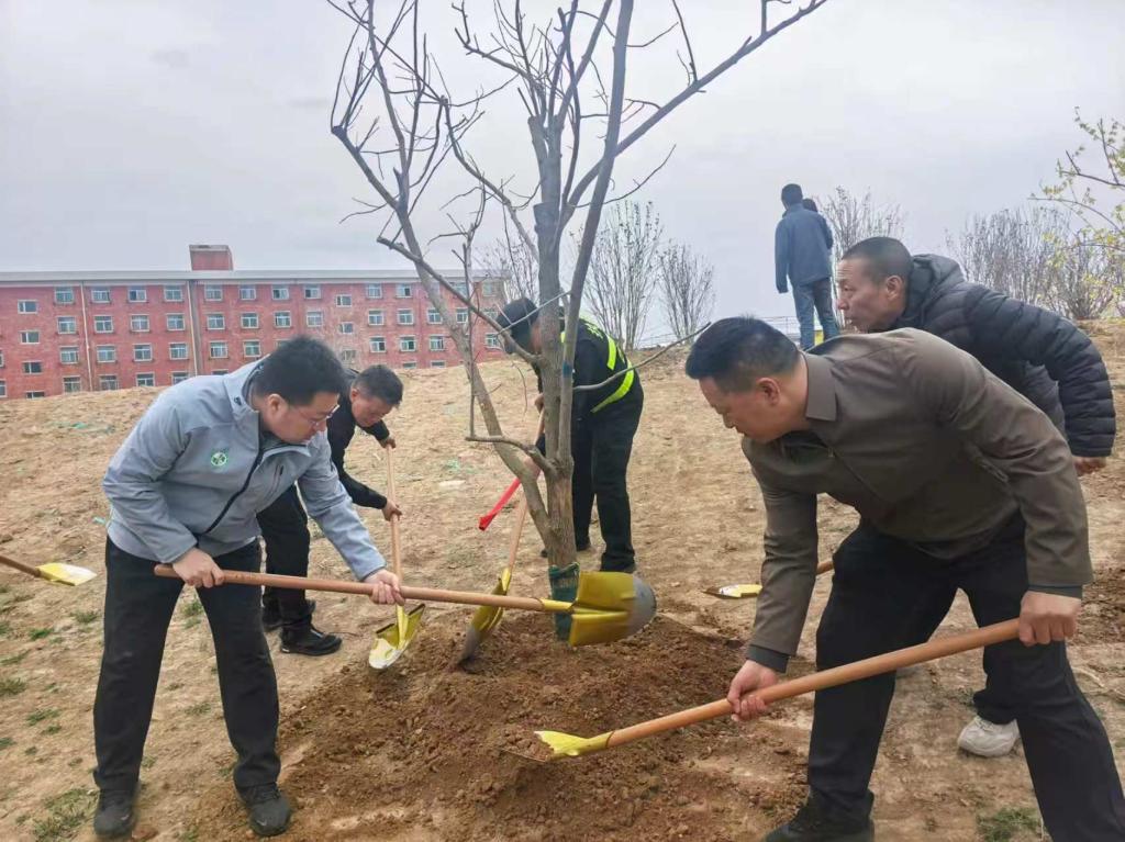 活动现场,两部门教职工热情高涨、干劲十足,大家分工协作,默契配合,挥锹铲土、扶苗填坑、提水浇灌,每一道工序都一丝不苟,呈现出一派热火朝天的劳动景象。经过辛勤劳作,柿子树、石榴树等树苗“安家落户”,一株株新树迎风挺立,为初春增添了一抹盎然生机。