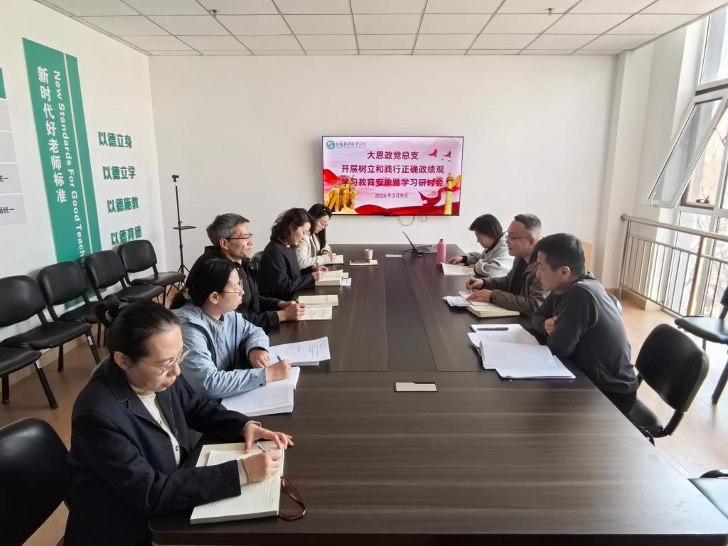 按照学院党委的统一安排部署,3月9日下午,大思政党总支在综合楼师德涵养基地会议室召开树立和践行正确政绩观学习教育安排暨学习研讨会,总支各支委及所属各党支部书记参会。会议深入学习贯彻上级相关文件、会议精神,安排总支学习教育工作,开展专题学习研讨,推动正确政绩观落地见效。