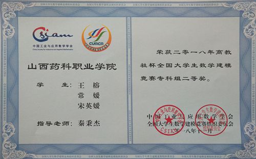 2019年3月31日下午,2018年全国大学生数学建模竞赛山西赛区颁奖仪式在山西交通职业技术学院进行,我院学生在此次比赛中再次取得优异成绩。由秦秉杰老师指导的宋英媛、王榕、常媛三名同学组成的参赛队荣获专科组全国二...2019-04-01 -