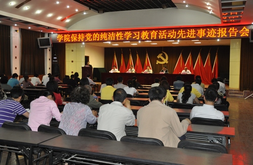 为推动我院创先争优和纯洁性教育活动深入开展,激励广大党员干部爱岗敬业、争创一流, 5月16日下午,学院在文体中心组织举行优秀共产党员先进事迹报告会。学院领导班子成员出席报告会,报告会由党委副书记、纪委书记...2012-05-18 -