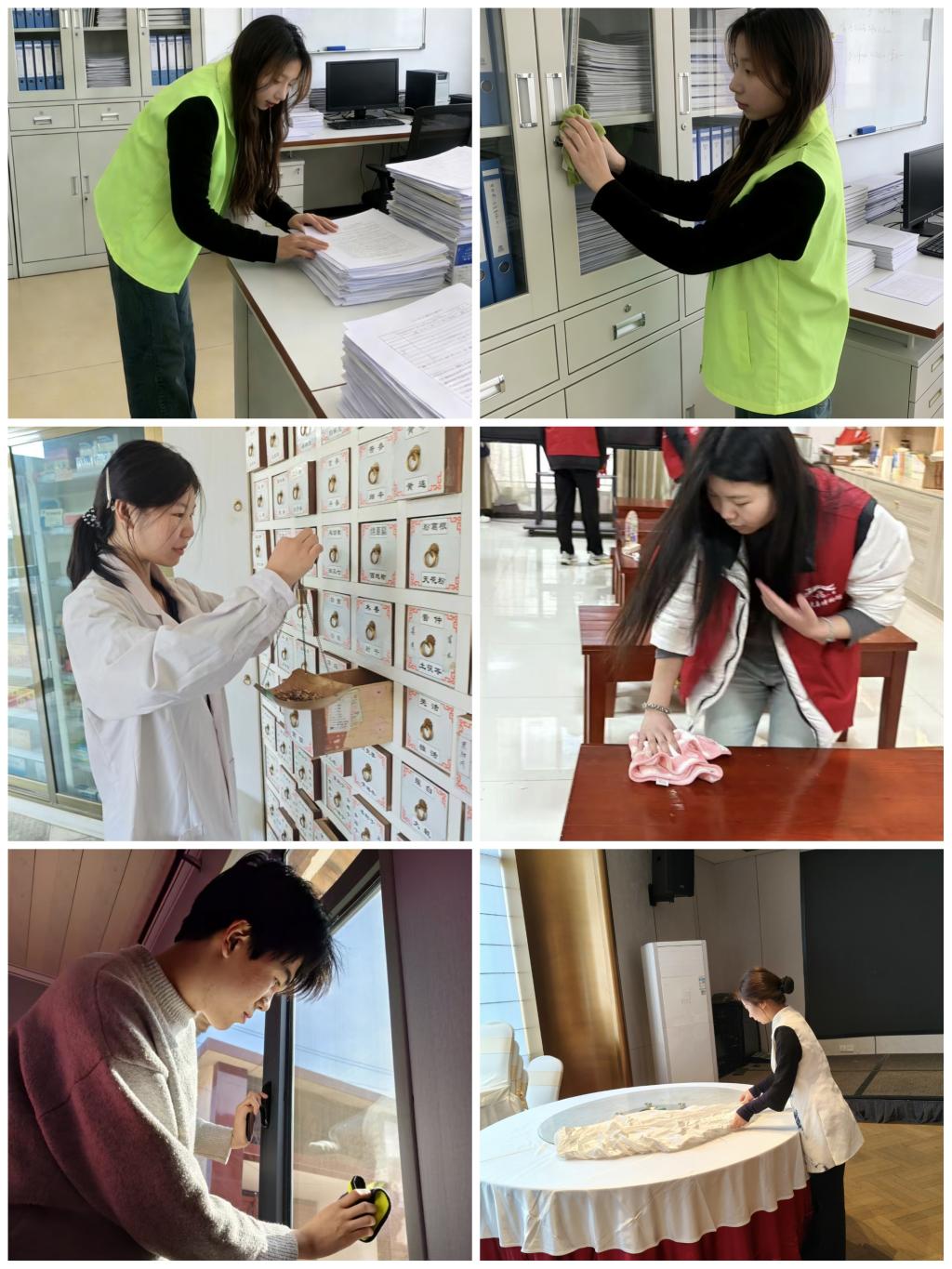 2024级药学6班武瑞茗主动投身村委会办公区域清扫志愿服务,文件分类归档、桌椅擦拭、地面除尘、窗户擦洗……她与同伴们精益求精,不放过任何一个卫生死角,让原本略显零散的办公空间变得整洁有序、焕然一新。“我们整理的不仅是文件,更是服务群众的初心与责任担当。”她坦言,“看着村干部在整洁有序的环境中高效履职,村民办事时舒展的笑颜,我愈发懂得“细微处见真章,小事中显担当”的深刻内涵。”这不仅是办公环境的洁净整治,更是青年心灵的淬炼升华,劳动让青年在躬身服务中明晰责任担当,在无私奉献中筑牢信仰之基。