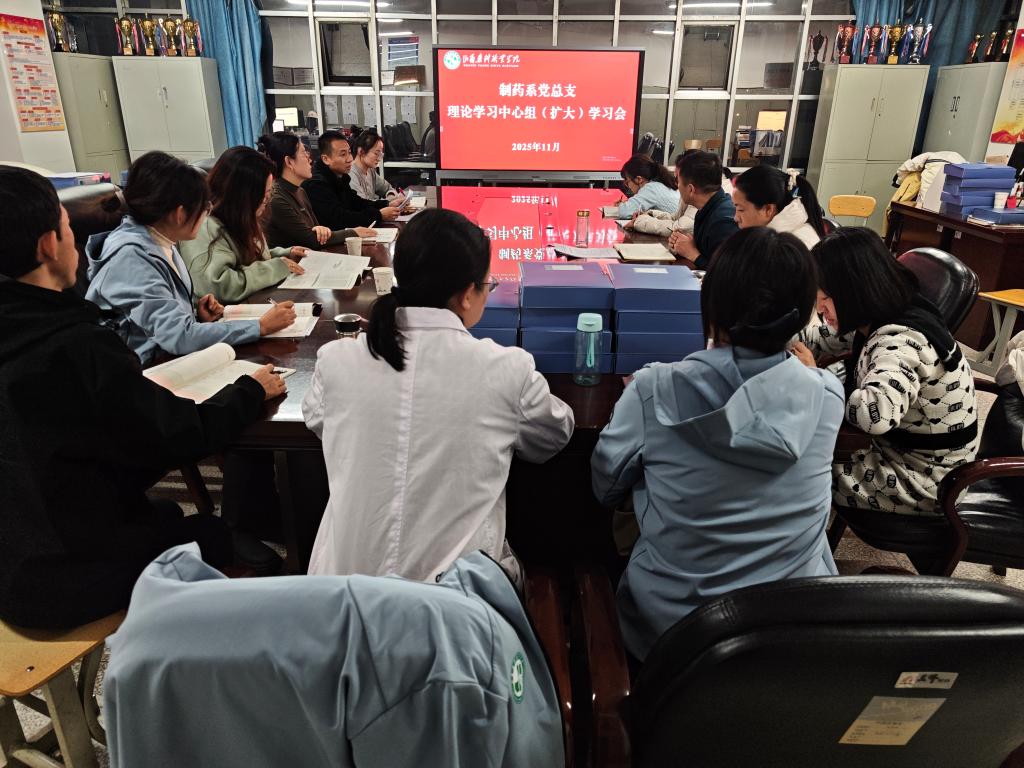 近日,制药系党总支召开理论学习中心组(扩大)会议,全体教职工参加。