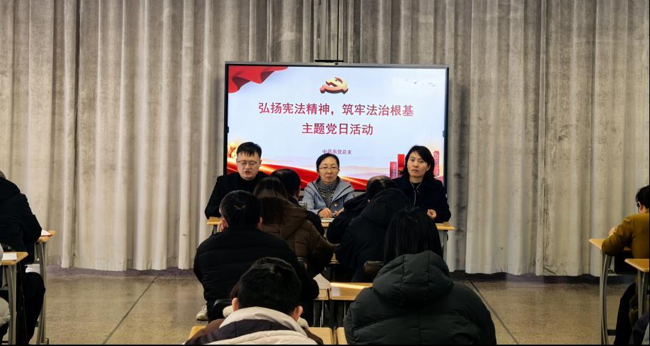 为深入学习宣传贯彻习近平法治思想,推动宪法深入人心,强化师生党员法治观念与党建责任意识,压实支部书记履职担当,12月25日,中药系党总支教师党支部和学生党支部联合开展“弘扬宪法精神,筑牢法治根基”主题党日活动,全体教师党员和入党积极分子代表参会。